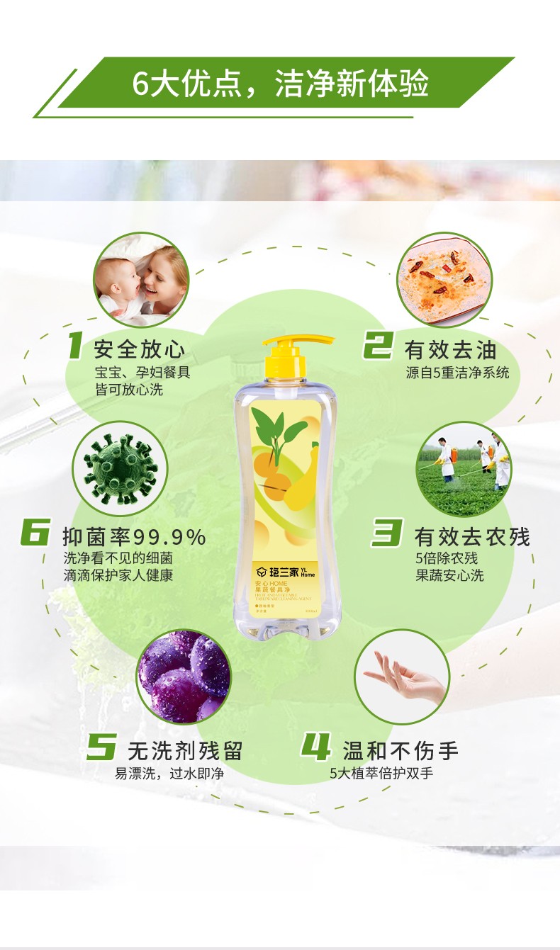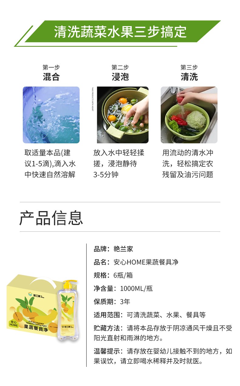 安心HOME果蔬餐具净 6瓶/箱 1*1000ml