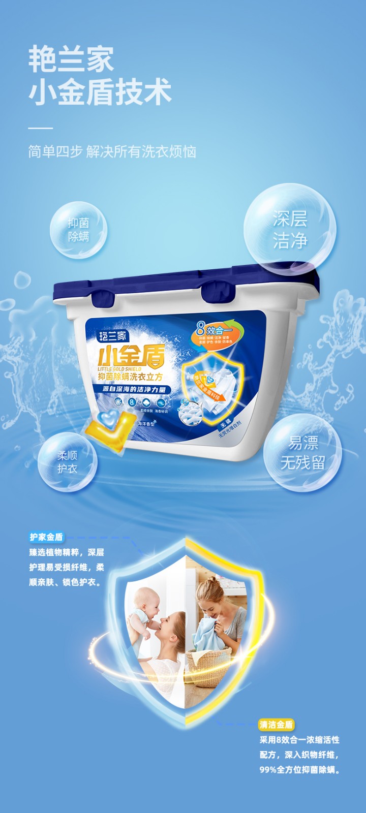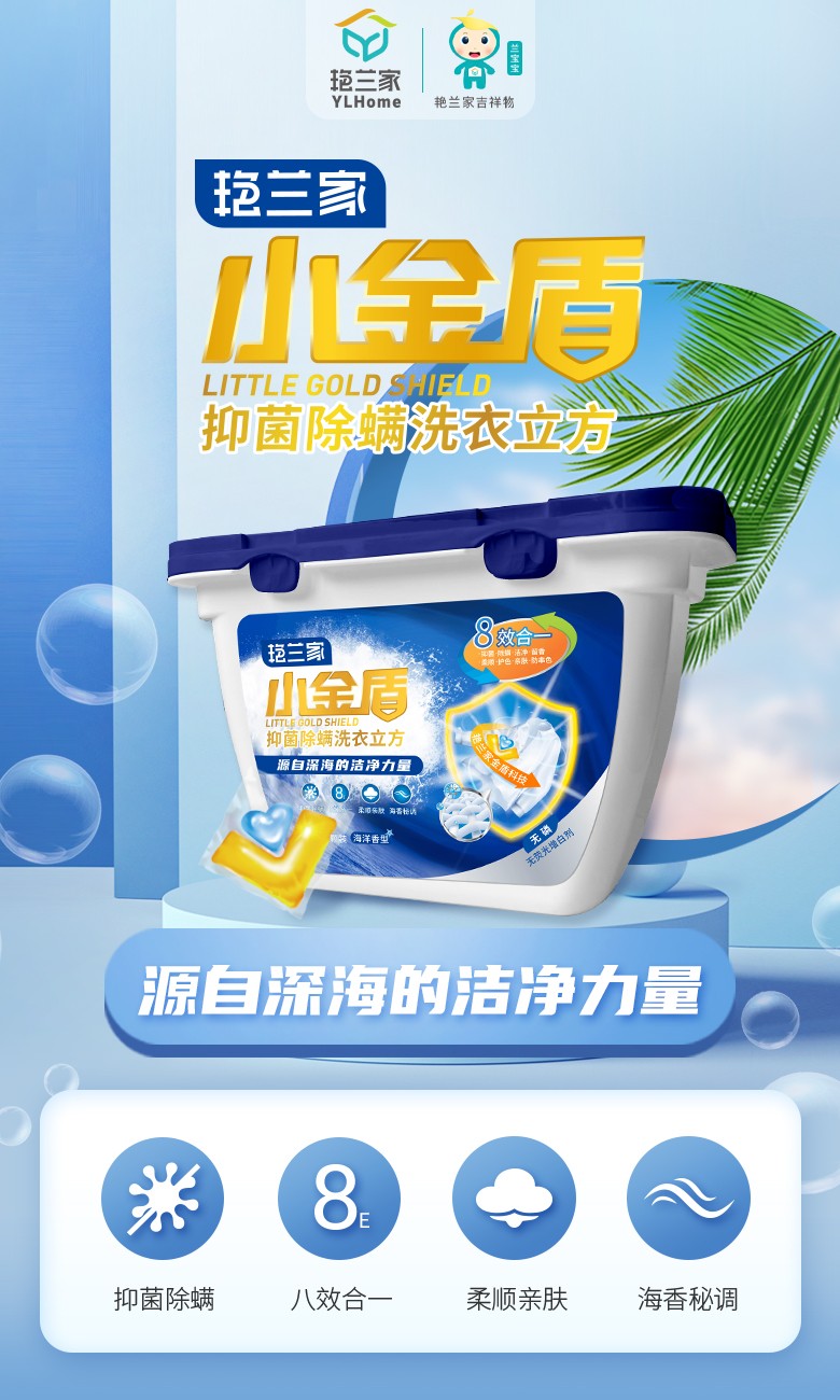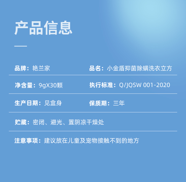 艳兰家小金盾抑菌除螨洗衣立方1箱(4盒*30颗)